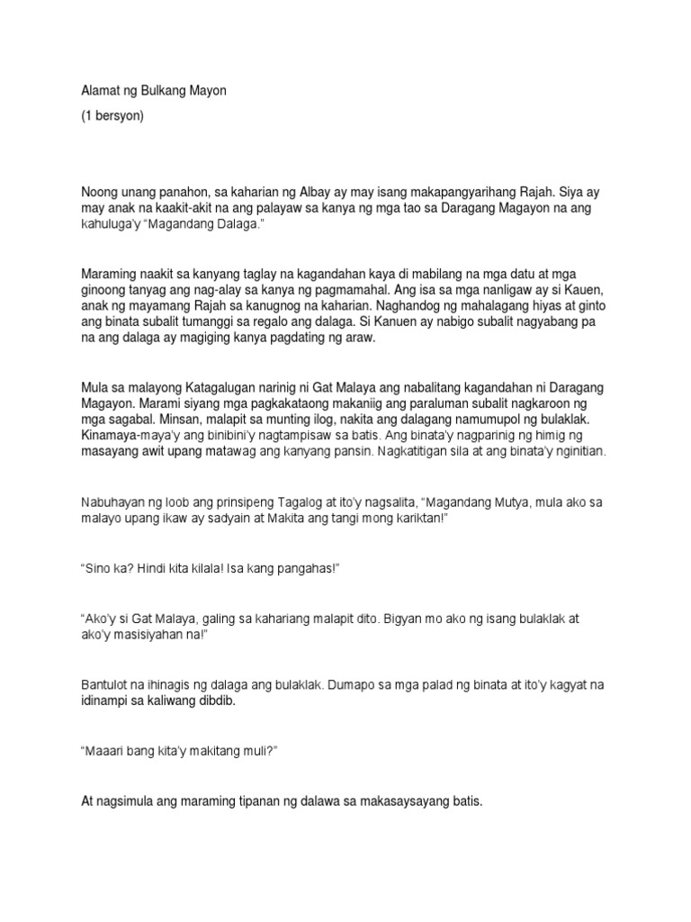 Buod Ng Alamat Ng Bulkang Mayon Pdf