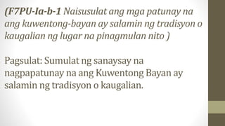 Sumulat ng mga kababalaghan o di- kapanipaniwala supernatural na naranasan napakinggan nabasa o karanasan ng. Nakapagtataka kung bakit may pulang palong ang mga tandang. Salamin ng Mindanao Aralin 11 Kuwentong-Bayan.