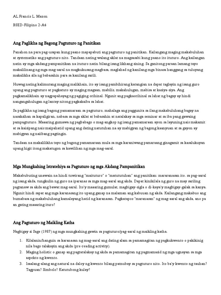 Ang akdang pampanitikan ay tumutukoy sa mga akda o mga sulatin katulad ng mga tula maikling kwento pabula parabula epiko alamat sanaysay talumpati at marami pang ibaIto rin ay nagsasalaysay ng kaalaman damdamin kultura. MGA AKDANG PAMPANITIKAN 1. View 6 pagsusuri-ng-akdang-pampanitikanpdf from BSED 101 at Lyceum of Aparri.