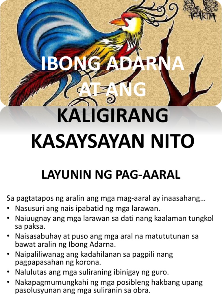 Ang Ibong Adarna - Filipino. Save Save 82834695-Mga-Tauhan-Sa-Ibong-Adarnapptx For Later. Sinabi ni Don Juan sa lahat ng tao na ang mahal niya ay.