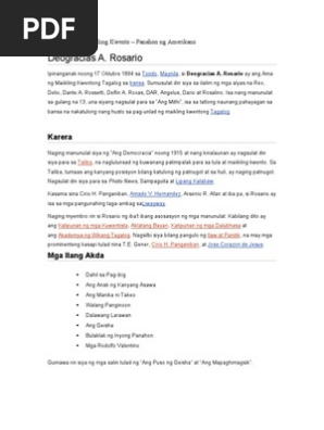 Ayon kay Edgar Allan Poe ang tinaguriang Ama ng Maikling Kuwento ay isang akdang. Rosario ang tinuturing na Ama ng Maikling Kwentong Tagalog. Rosario ama ng maikling kwentong tagalog isa nang manunulat sa gulang na 13 ipinanganak noong oktubre 17 1894 sa tondo manila.