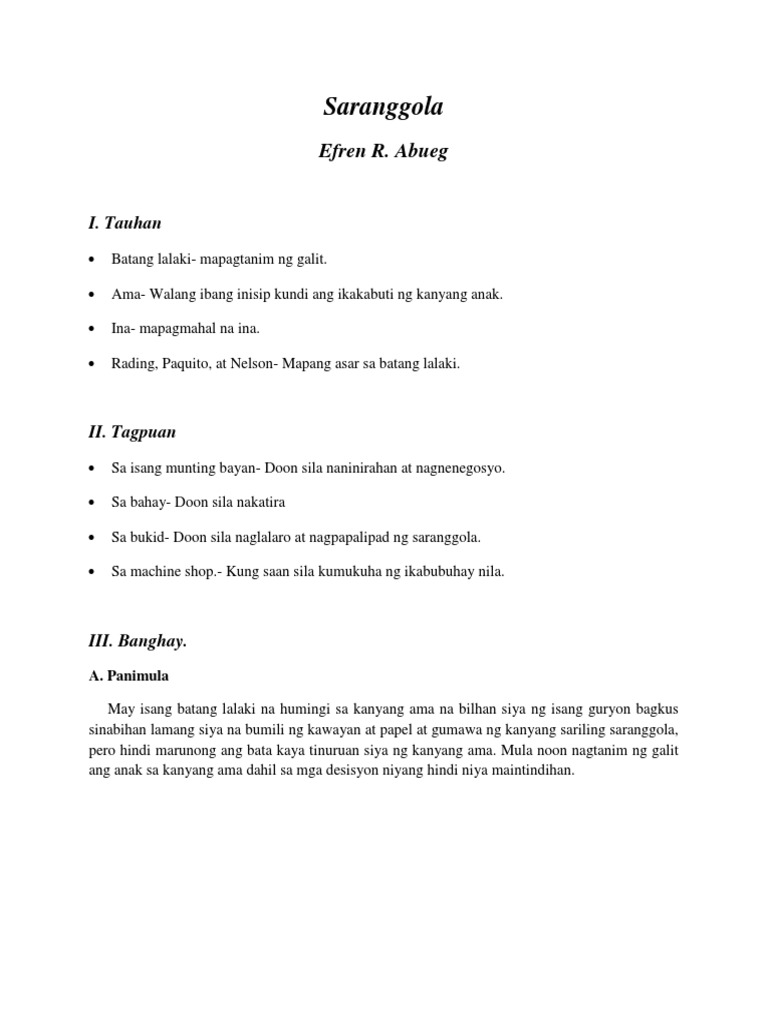 Ng mga sitwasyong may mga tauhang nasasangkot ngunit walang. Ang mg kilos para. May siyam na uri ng maikling kuwento.