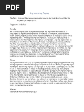 0 ratings 0 found this document useful 0 votes 2K views 39 pages. Maaari ding ang paksa ng salaysay ay nakabatay sa tunay na daigdig o pantasya lamang. Napahahalagahan ang kuwento ng alamat ng pinya.
