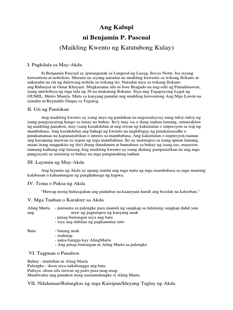 Pagsusuring Pampanitikan Ang Kalupi ni Benjamin Pascual Iniulat ni. Aliwalas ang kanyang mukha. 10 Halimbawa ng Maikling Kwento 2022.